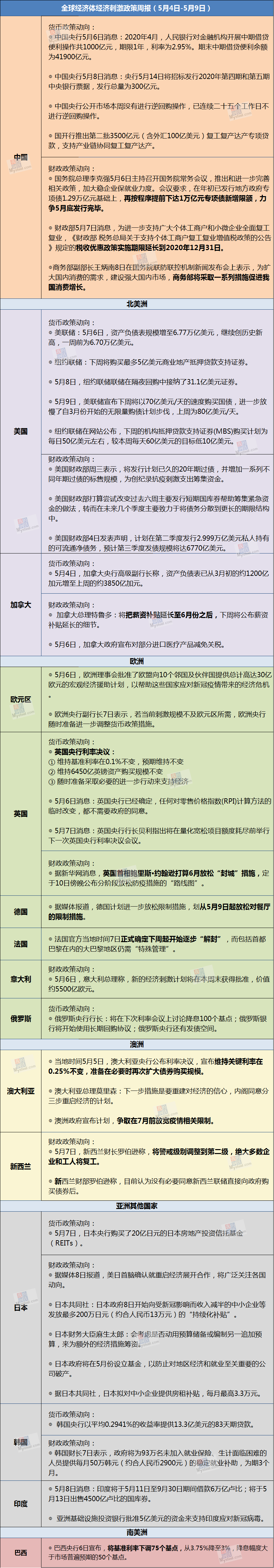 原标题:全球经济体经济刺激政策周报(5月4日-5月9日)