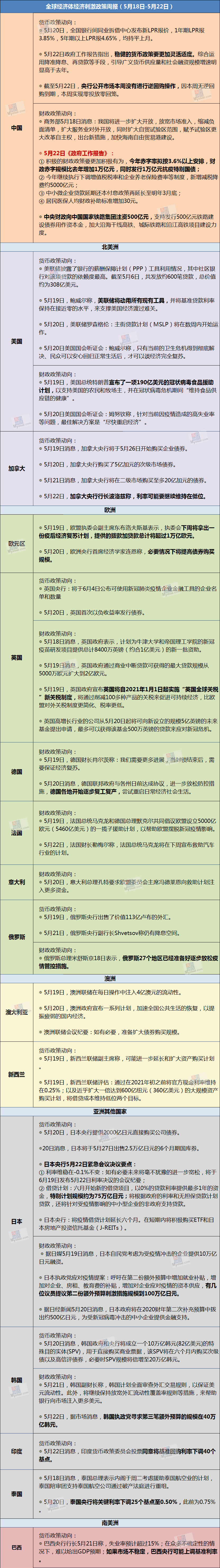 原标题:全球经济体经济刺激政策周报(5月18日-5月22日)